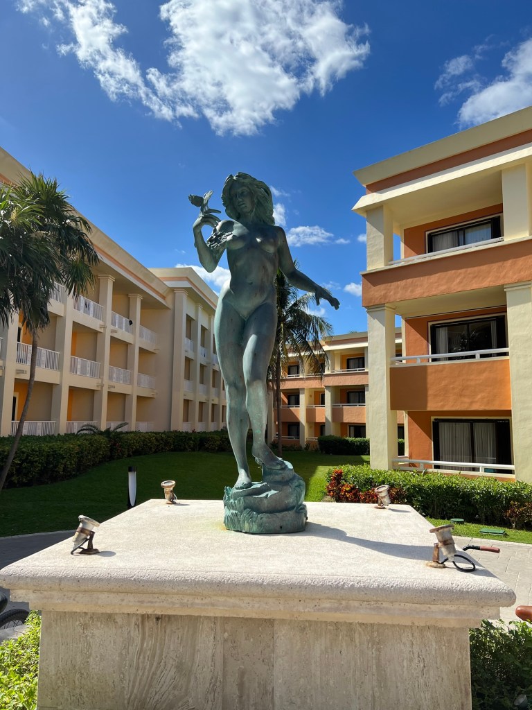 The next day we went for breakfast at the adult only buffet, which was amazing! And I loved all the birds flying around and was amused that they came into the restaurant (which was open to the elements on three sides) looking for morsels to snatch! Later discovered the HUGE buffet-which was amazing! We ate there every day, even if it was just for a snack. I loved seeing the variety of food there! They have the most beautiful restaurants, which we found out you had to book in advance for suppers! They were all beautiful, and the variety of cuisine was just crazy! They all offered you a “welcome drink”, their signature drink for the restaurant that day.