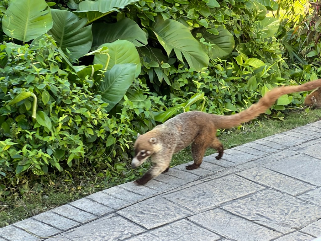 I was pleasantly surprised by the amount of local wildlife running around the resort! We were startled by a raccoon at the beach, but there were also many iguanas, coatis, agoutis, and birds! I said to Warren, “Welcome to Jurassic Park”, and with the bushes rustling and dark jungle, I wouldn’t have been surprised if a velociraptor jumped out!